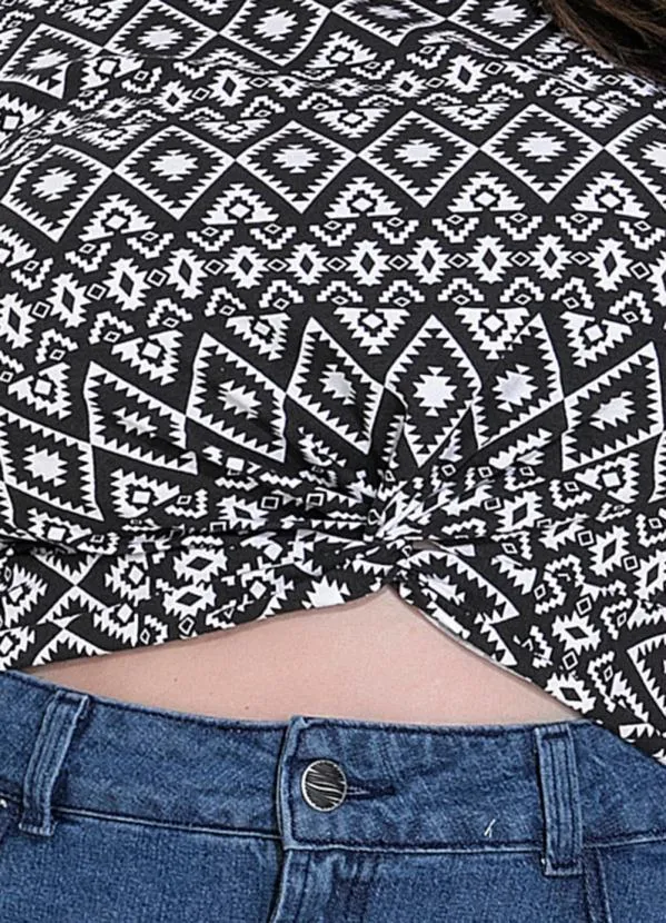 Marguerite - Blusa Geométrico Preto em Malha Cotton
