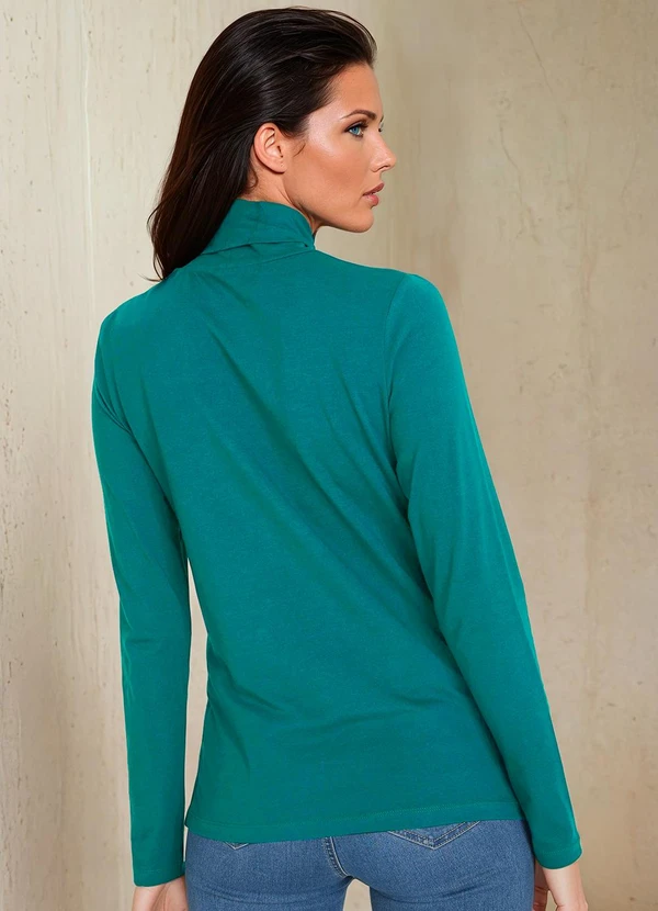 bonprix - Blusa Gola Alta Verde Escuro