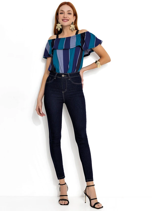 Moda Pop - Blusa Listrada com Alças e Babado