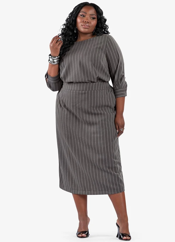 Secret Glam - Blusa Manga 3/4 Twill Plus Size Cinza