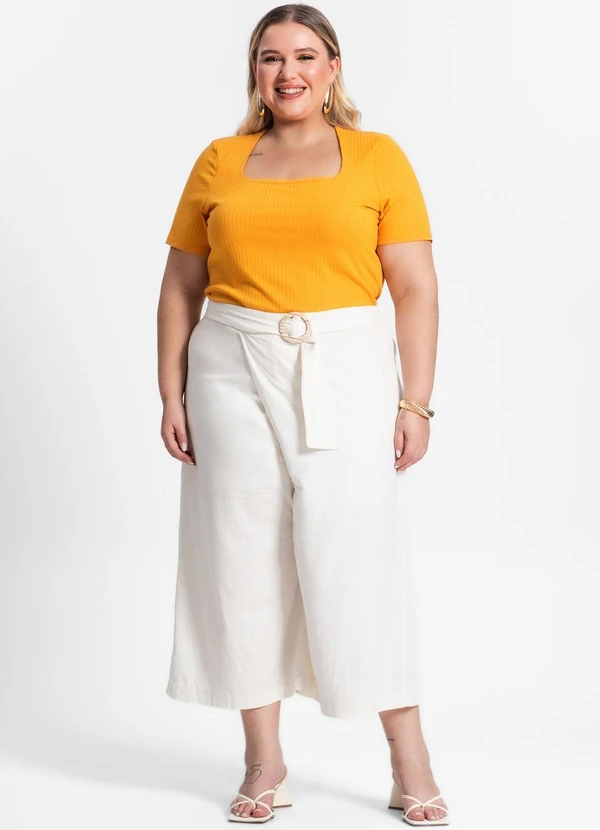 Secret Glam - Blusa Plus Size em Ribana Canelada Amarelo