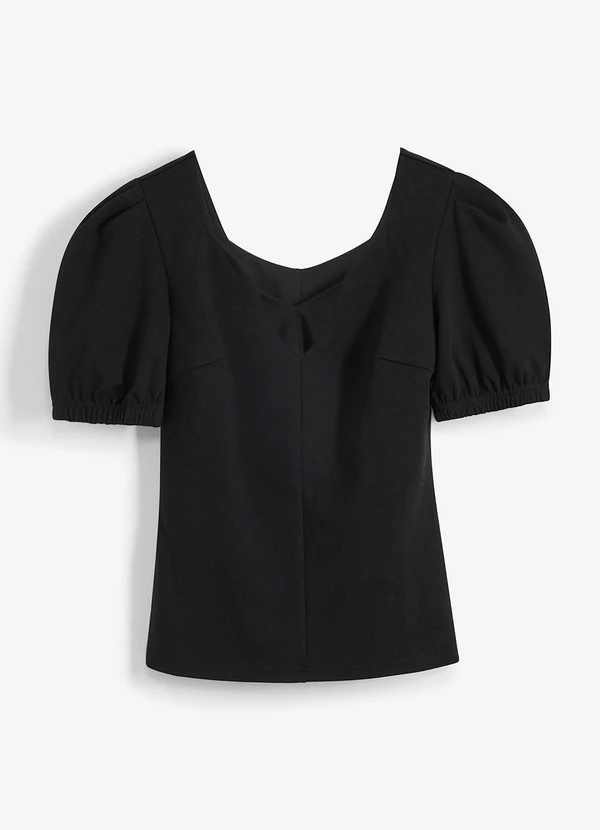 bonprix - Blusa Preta em Malha Crepe