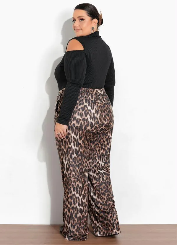 Marguerite - Blusa Preta Ribana com Ombros Vazados Plus Size
