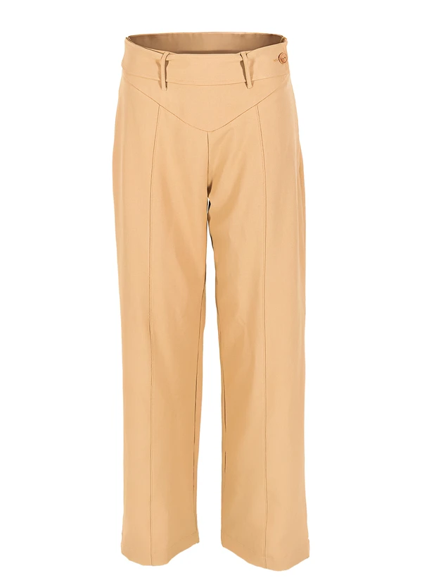 Quintess - Calça Bege em Crepe Plano Sarjado