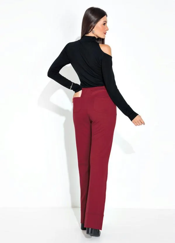 bonprix - Calça com Bolsos Frontais e Elástico Vermelha