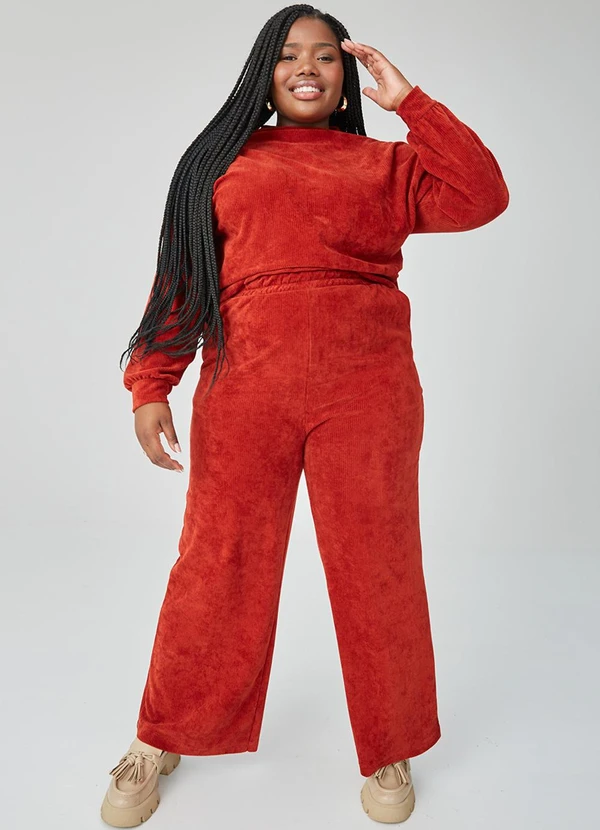 Malwee - Calça Feminina Clochard em Plush Plus Terracota