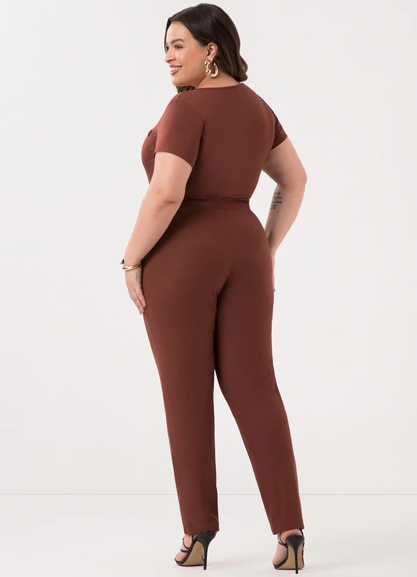 Lunender Mais Mulher - Calça Reta com Cós Elástico Diagonal Marrom
