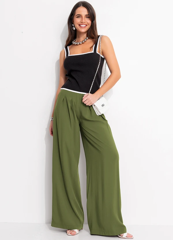 Quintess - Calça Verde em Viscose Plana