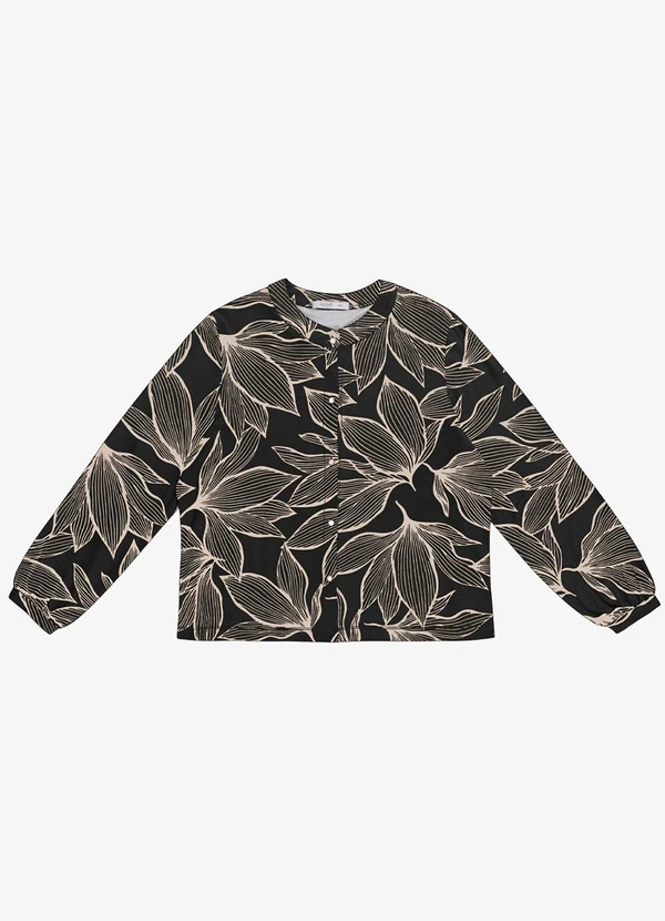 Secret Glam - Camisa Manga Longa Estampada Plus Size Preto