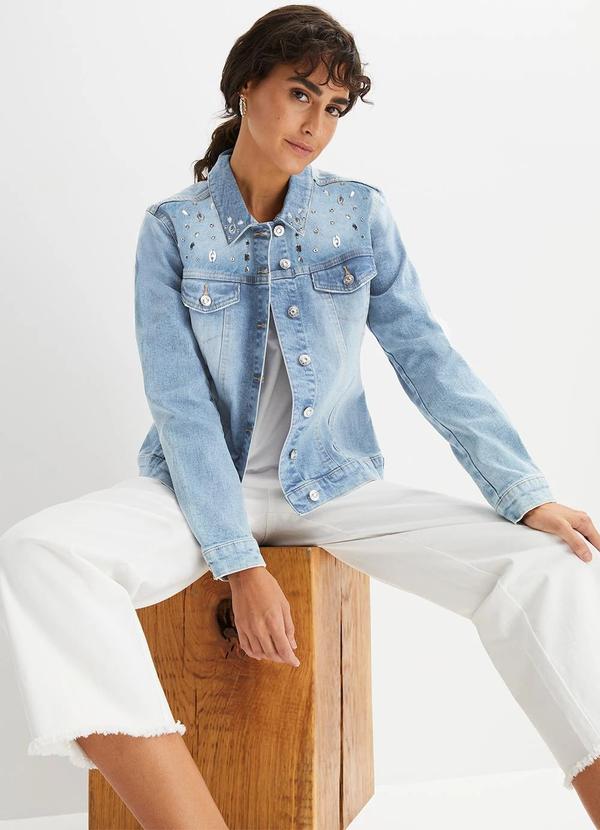bonprix - Jaqueta Jeans Claro com Aplique de Predraria