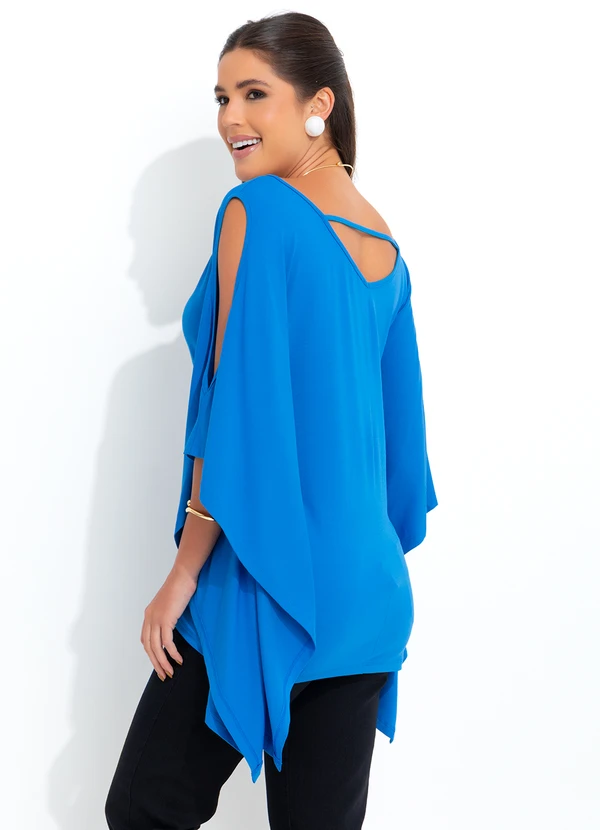 bonprix - Blusa Manga 3/4 Morcego Azul