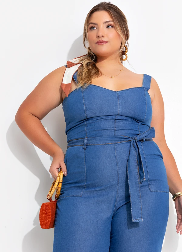 Quintess - Macacão Jeans Médio em Jeans