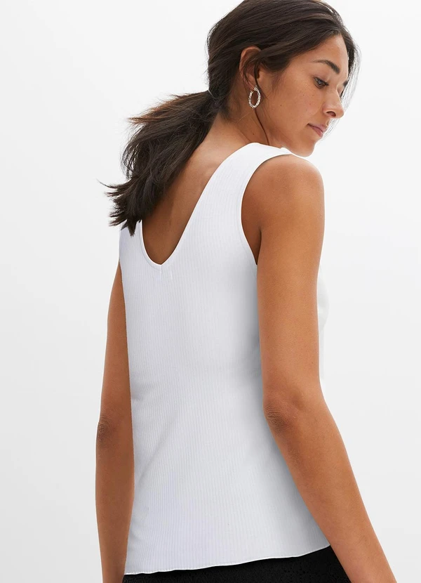 bonprix - Regata Branca em Ribana Canelada