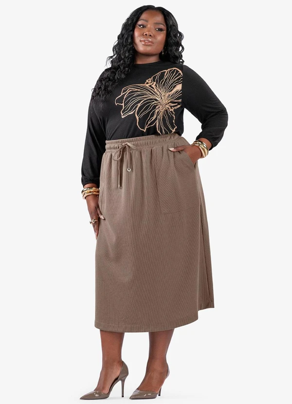 Secret Glam - Saia Midi com Bolso Plus Size Marrom