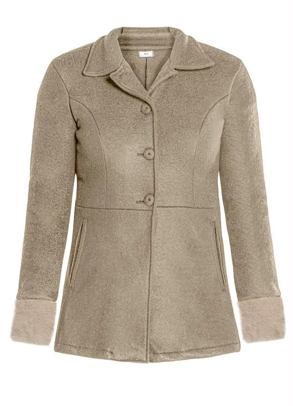 bonprix - Sobretudo com Manga Pelinho Bege