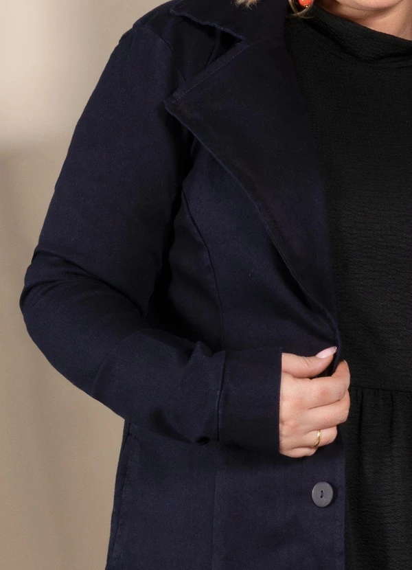 Quintess - Sobretudo Jeans Escuro com Gola e Bolsos