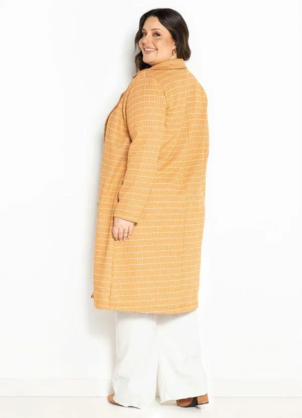 Marguerite - Sobretudo Xadrez Caramelo com Botões Plus Size