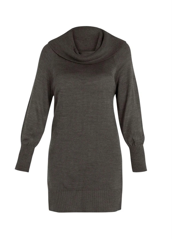 bonprix - Suéter de Tricô Ombro a Ombro Alongado Cinza