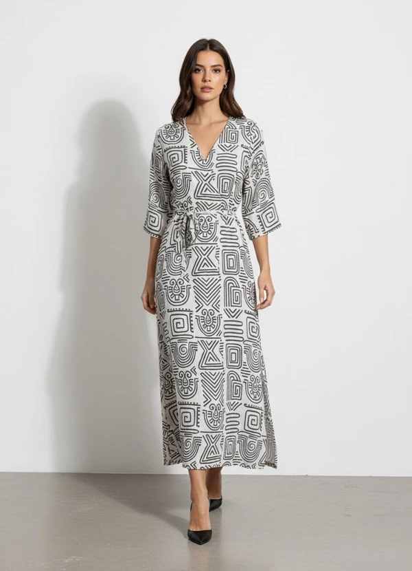 Quintess - Vestido Étnico Verde em Malha de Viscose