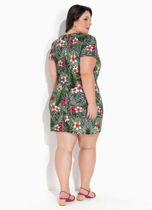 Marguerite - Vestido Folhas Verde Tubinho Plus Size