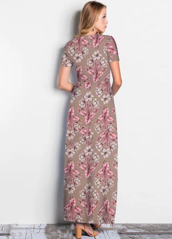 Rosalie - Vestido Longo Floral Nude