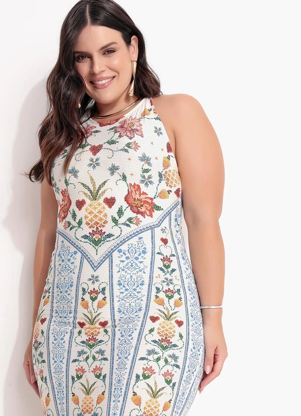 Farm - Vestido Midi em Viscose Off White