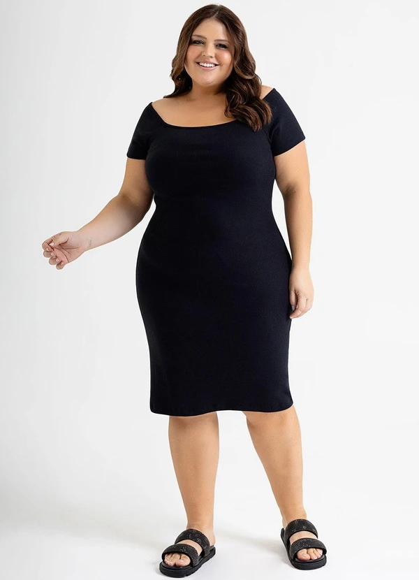 Just Basic - Vestido Ombro a Ombro em Ribana Preto