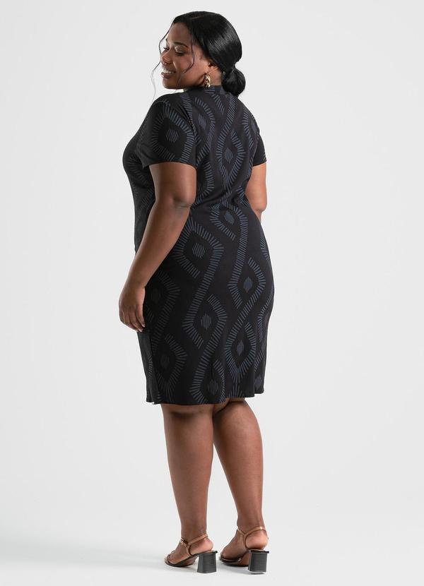 Cativa - Vestido Plus Size Curto em Viscose Preto