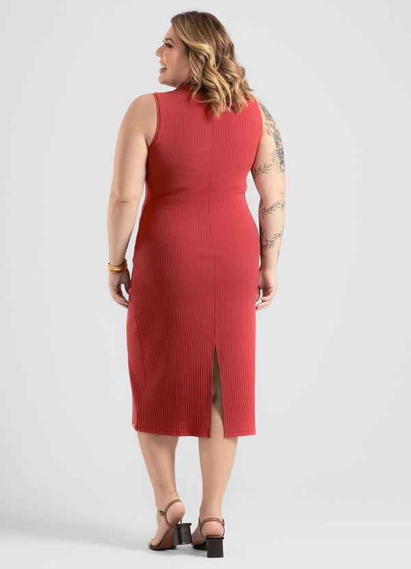 Cativa - Vestido Plus Size Midi em Canelado Marrom Escuro