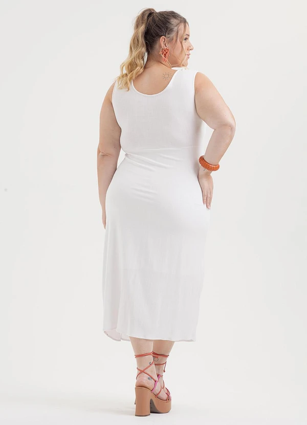Cativa - Vestido Plus Size Midi em Viscose Branco
