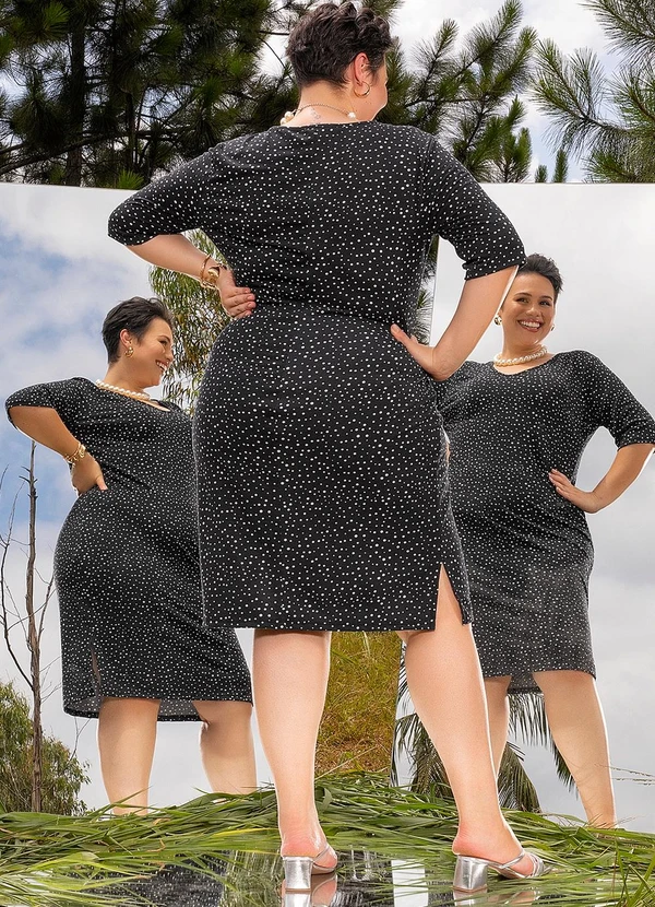 Marguerite - Vestido Poá Preto em Malha Crepe