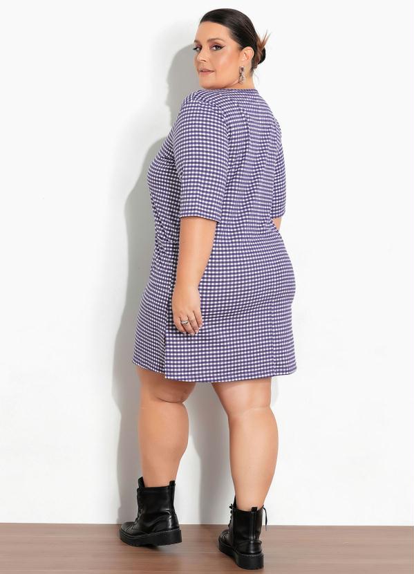 Marguerite - Vestido Xadrez Roxo com Bolsos Plus Size