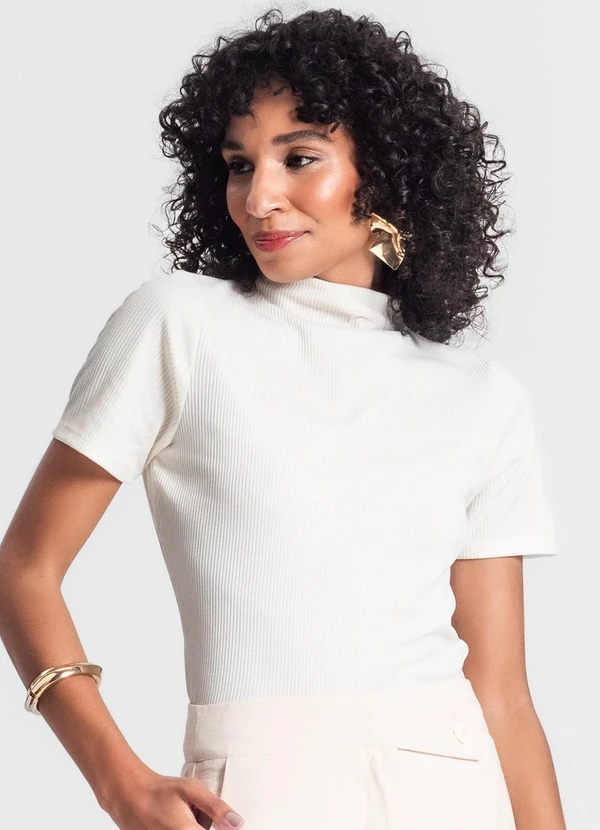 Rovitex - Blusa Gola Alta em Ribana Canelada Bege