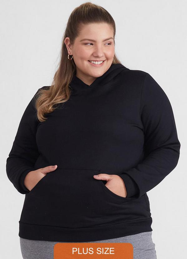 Basicamente - Blusão Moletom Flanelado Capuz Plus Preto
