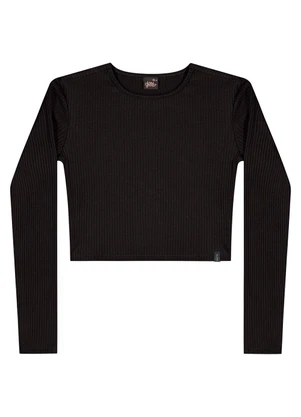 Blusa Cropped Juvenil em Ribana Preto