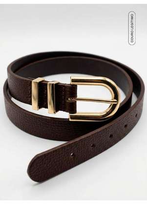 Cinto em Couro com Passantes Dourados Marrom Aylin
