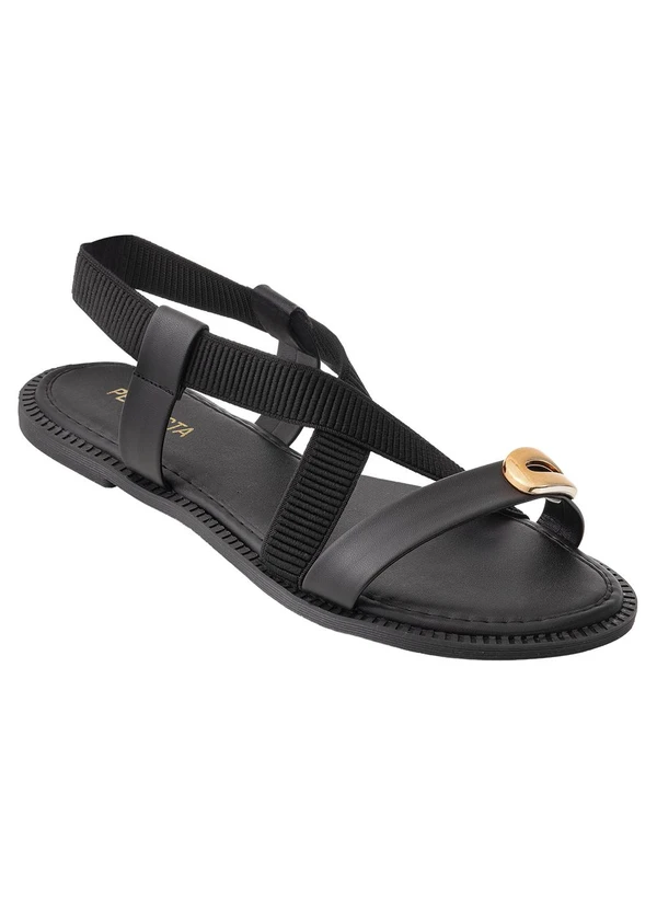 Perfecta - Rasteirinha Preta com Cabedal em Elástico