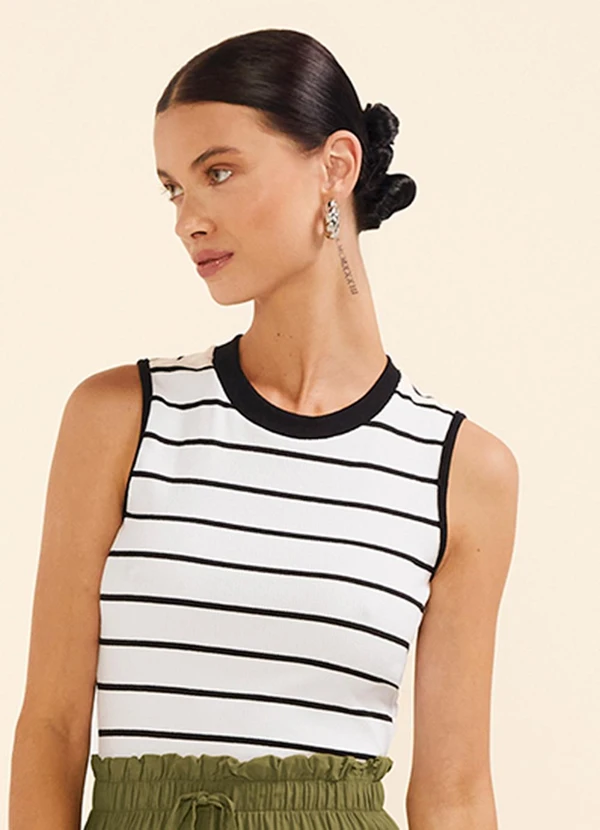 Marialícia - Regata Feminina Canelada Listrada Branco