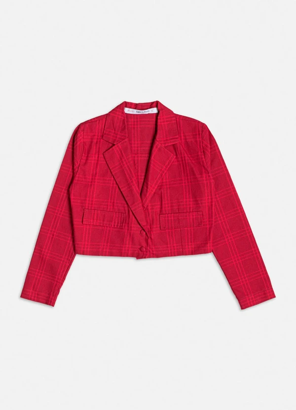 Authoria - Blazer Cropped Vermelho Xadrez Vermelho