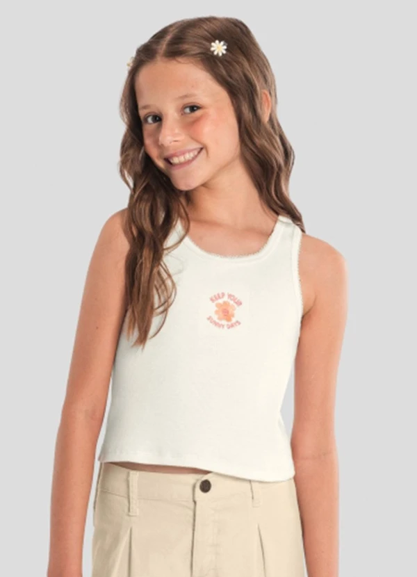 Brandili - Blusa Infantil Menina Regata em Ribana Natural