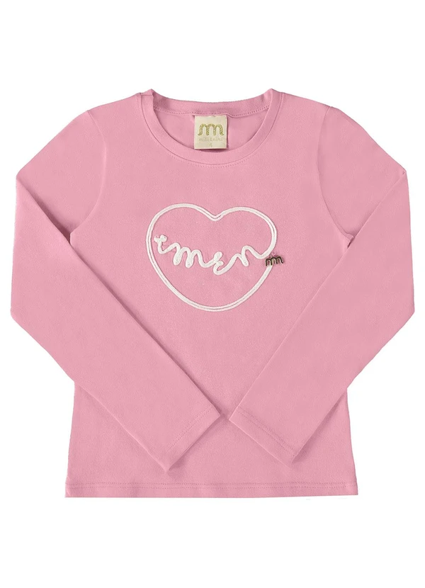 Milli e Nina - Blusa Menina Cotton Penteado Bordado Rosa