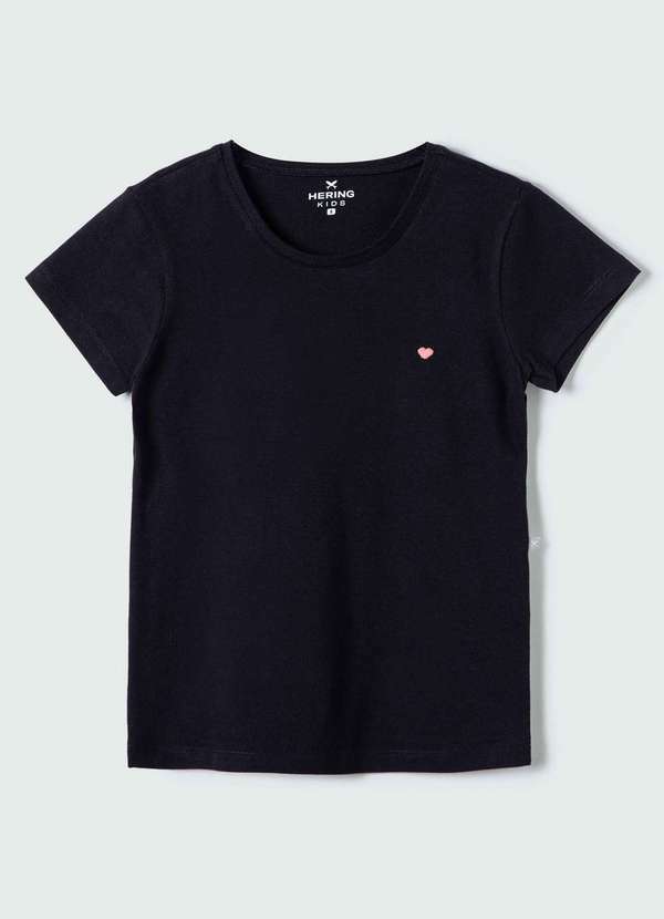 Hering - Blusa Menina Manga Curta Slim com Bordado Preto