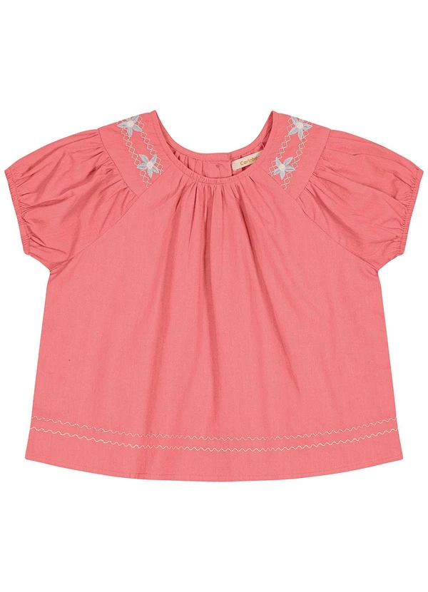 Carinhoso - Blusa Rosa com Bordado Floral Menina