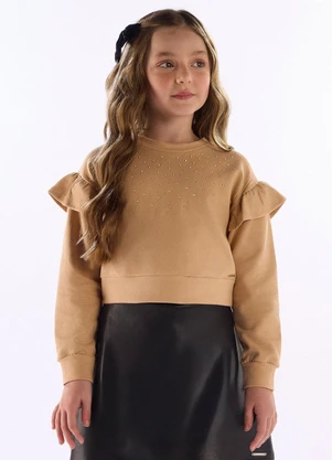 Quimby - Blusão Molecotton Babado Strass Marrom - QUIMBY