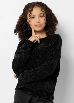 Suéter Juvenil Chenille Manga Longa Preto