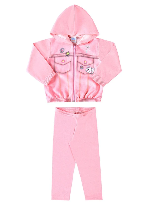 Marlan - Conjunto Bebê Jaqueta e Legging Jeans Baby Rosa
