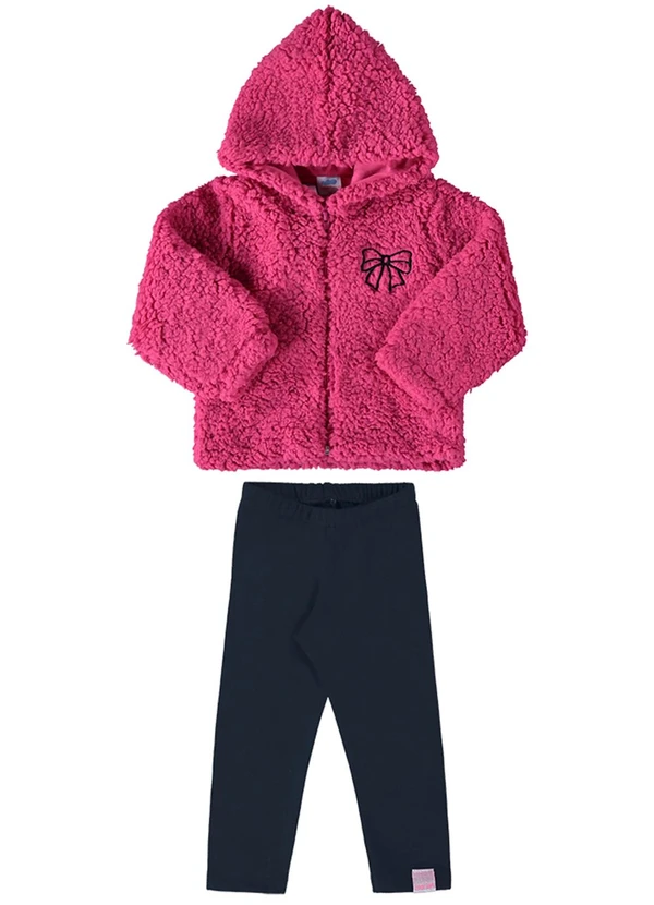 Marlan - Conjunto Bebê Jaqueta Sherpa e Legging Baby Rosa