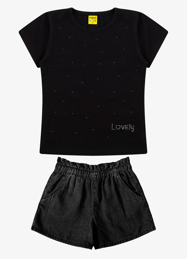 Rovi Kids - Conjunto Blusa com Shorts Feminino Preto