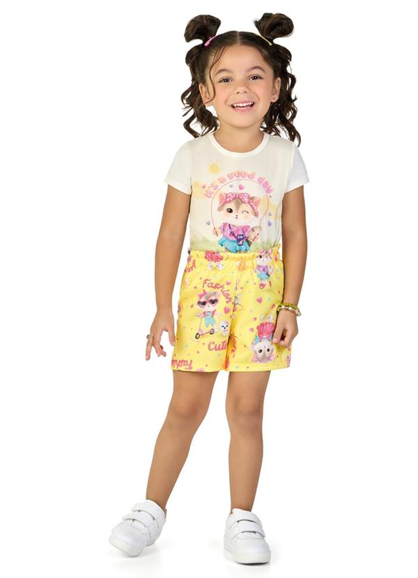 Marlan - Conjunto Blusa e Shorts Gatinhas Fashion Bege