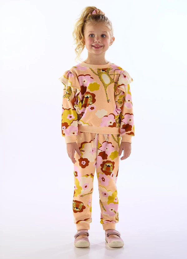 Três e Já - Conjunto Blusão Calça Onça Rosa